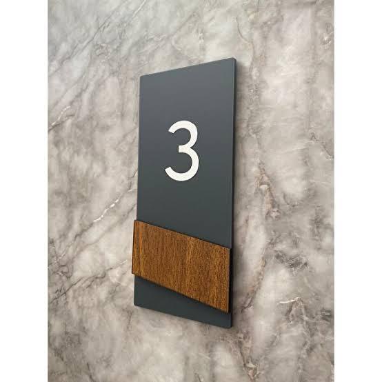 Pleksi ve Ahşap Detaylı Özel Tasarım Kapı Numarası
